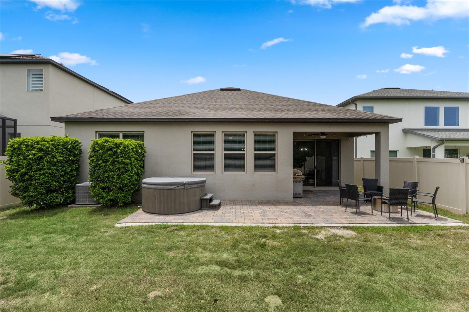 Step outside and you'll find one of the best parts of the home: a private backyard with no rear neighbors. There's a covered patio that's perfect for weekend barbecues, a large open area to relax or entertain, and even an above-ground jacuzzi waiting for a sunset soak.